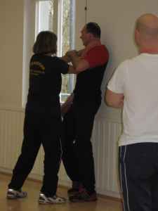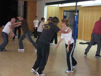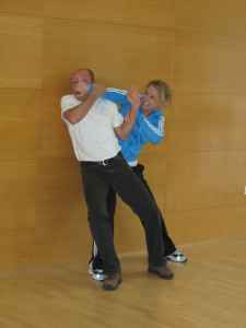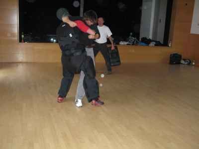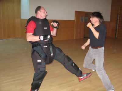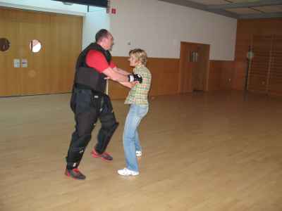 In diesem Jahr fand, auf vielfachen Wunsch der Teilnehmer, schon zum zweiten Mal ein SV-Lehrgang mit KRAV MAGA Instruktor Alex Eisel statt. Bereits im Frühjahr konnte Alex die Teilnehmer in die Welt des KRAV MAGA einführen und sie dafür begeistern. Die gezeigten Techniken waren für uns Karatekas nicht fremd, jedoch in der Kombination für jeden etwas Neues. Alex, der viele Jahre in Berlin als Personenschützer im Einsatz war, konnte mit persönlichen Erfahrungen so manches Märchen entzaubern. Dieses Mal wurde nicht im Karate Gi, sondern in Straßenkleidung geübt. Den vollen Einsatz der Teilnehmer überlebte nicht jedes Kleidungsstück. Zum Abschluss legte sich Alex einen Vollkörperschutz an und die Teilnehmer durften auf freiwilliger Basis ihr Können unter Beweis stellen. Einzeln kamen sie in die Halle und legten zunächst einen Stresstest ab, danach sollten sie die Halle wieder verlassen. Dies wurde jedoch durch verbales und körperliches Anpöbeln ernsthaft verhindert. Erschöpft vom Stresstest, mussten sie nun die letzten Reserven für die harte Selbstverteidigung mobilisieren. Die ernüchternde Erkenntnis aus diesem Training: Um Erfolg zu haben, muss man körperlich und mental top fit sein, sonst kann man im Ernstfall nicht das umsetzen, was der Kopf plant. Nach 4 schweißtreibenden Stunden war der Lehrgang vorüber. Am Ende waren sich alle einig, beim nächsten KRAV MAGA-Lehrgang sind wir wieder mit dabei! Resümee des Tages: An diesem Tag konnte jeder Karateka unter fast realen Bedingungen testen, wie schwer es ist, sich ernsthaft zur Wehr zu setzten. |