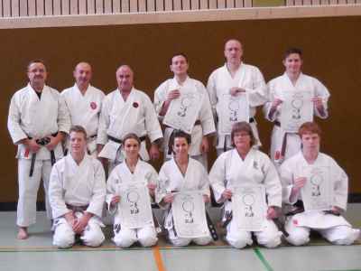Im Alter von 6 und 8 Jahren begannen Thomas Schwab und Felix Rohrbach bei uns in Hardthausen mit dem Karate. Damals konnte keiner wissen, dass beide dem Weg des Karate Do bis heute treu bleiben würden. Es folgten Jahre mit Höhen und Tiefen, Kinderkrankheiten, Verletzungen (nicht beim Karate erworben!) und Stolpersteinen, die eben das Leben so mit sich bringt. Und trotzdem blieben Felix und Thomas dem Karate treu. Der Höhepunkt auf ihrem Weg stand am Samstag, den 07.12.2013 bevor. Beide waren versessen darauf, ihre Meisterprüfung abzulegen. Über Monate hinweg bereiteten sie sich akribisch für diesen Tag vor. Als dann die Prüfung begann, sah man schon im Ansatz, dass die Hardthäuser Karatekas mal wieder auf super vorbereitet waren. Die Leistungskurve ließ nicht nach, sondern legte von Prüfungsteil zu Prüfungsteil zu. Als zum Schluss die Selbstverteidigung und der freie Kampf anstanden, konnte jeder sehen, dass diese beiden jungen Karatekas zu Recht ihren Meistergrad verdient hatten. Der TSV Hardthausen e.V. Abt. Goju Ryu Karate Do hat nun zwei neue Schwarzgurte dazu bekommen. Zeitgleich trainierten auch zwei Karatekas aus Neckarsulm bei uns in Hardthausen, Eva Franz und Harry Gilbert bestanden im besten Frauen- und Mannesalter von 45 und 48 Jahren ihre Prüfung zum 2.Meistergrad. Herzlichen Glückwunsch vom Team des Dojo Hardthausen, wir sind stolz auf Eure Ergebnisse, Ihr vier! Abschließend bleibt zu erwähnen: "Ihr habt die Tür nun aufgestoßen in eine neue Welt der Meistergrade. Bleibt zu hoffen, dass Ihr hinein tretet und dem Weg treu bleibt." Über allem steht der Satz meines Meisters: "Bleib höflich und bescheiden!" Diese Aufforderung gebe ich Euch ebenfalls mit auf den Weg, "bleibt höflich und bescheiden!" Euer Sensei Christian Schollenberger |